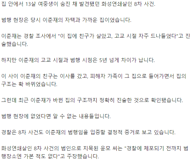 이춘재는 바뀐 집 구조를 알고 있었음.