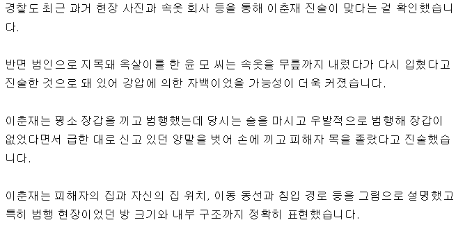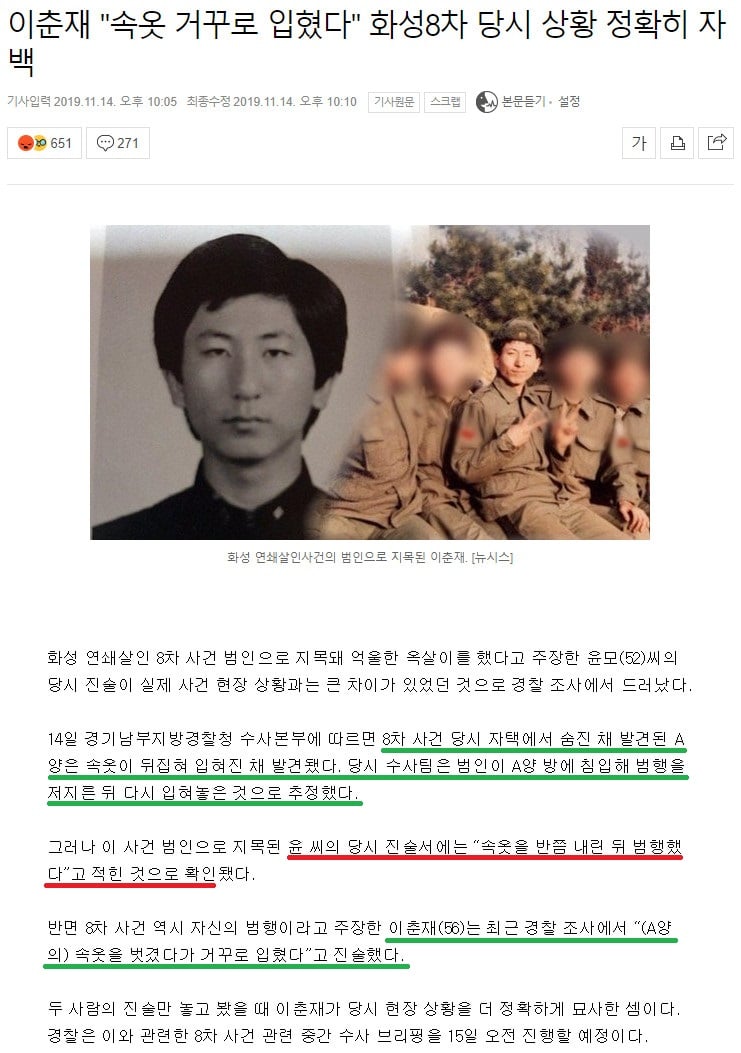 오히려 이춘재가 완전히 벗겼다가 거꾸로 입혔다고 진술함.